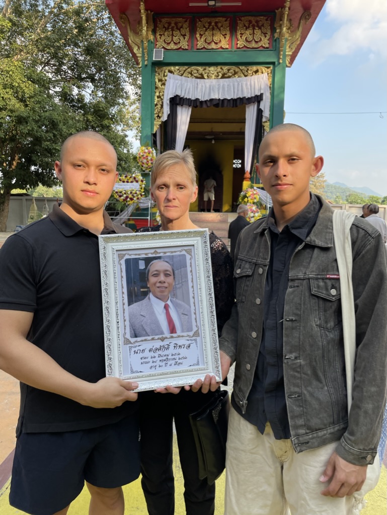 48 hours later, after landing in Bangkok and flying to the Northeast edge of Thailand where Dtaw’s hometown stood on the edge of the Mekong River, the boys and I arrived at the funeral. Being back “home” where Chan had been born (in the same bed where his dad had died) and in the same house where his funeral had been 18 years before triggered an explosion of memories. Every shop, every street corner, every view of the clouds over the river reminded me of memories of my life as a young woman falling in love, a young mother delighted with her brood, an exhausted mother fighting for Chan’s life, and a heartbroken mother, contending with his death.