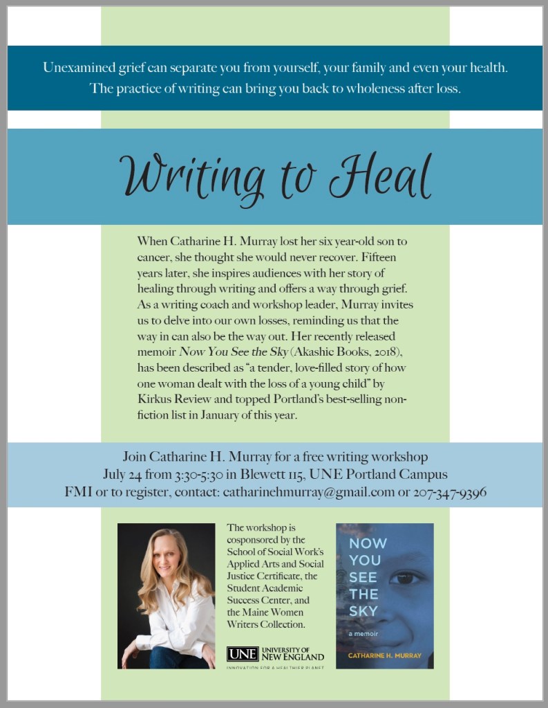 When Catharine H. Murray lost her six-year-old son to cancer, she thought that she would never recover. Fifteen years later, she inspires audiences with her story of healing through writing and offers a way through grief.